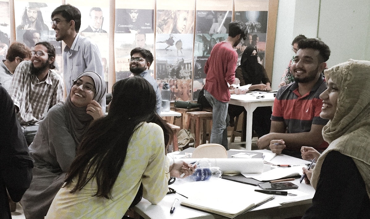 Wie lassen sich die Sehnsüchte der Menschen in naher Zukunft erfüllen? Dieser Bezugspunkt wird von den Studierenden sofort angenommen. Sie träumen und bauen an der Uni in Karachi genau so, wie junge Menschen an europäischen Hochschulen. Die Arbeit mit den Charakteren und der Dramaturgie von Poetic Thinking funktioniert kulturübergreifend und führt nach vier Tagen zu sehr wertvollen Ergebnissen. Am Ende des ersten Workshops hat jeder einzelne Student eine klare Vorstellung davon, welche Themen und Ansätze, welche Konflikte und Herausforderungen er oder sie in den nächsten Monaten angehen möchte. Die Professoren und die Mitarbeiter des Goethe-Instituts sind beeindruckt: Der Boden für verschiedene digitale Projekte mit Start-up-Potential ist bereitet.